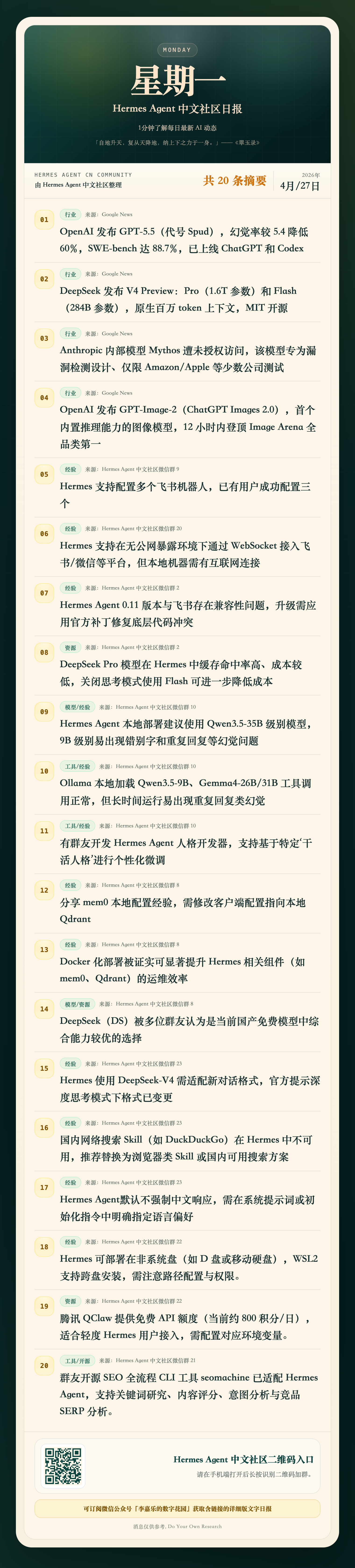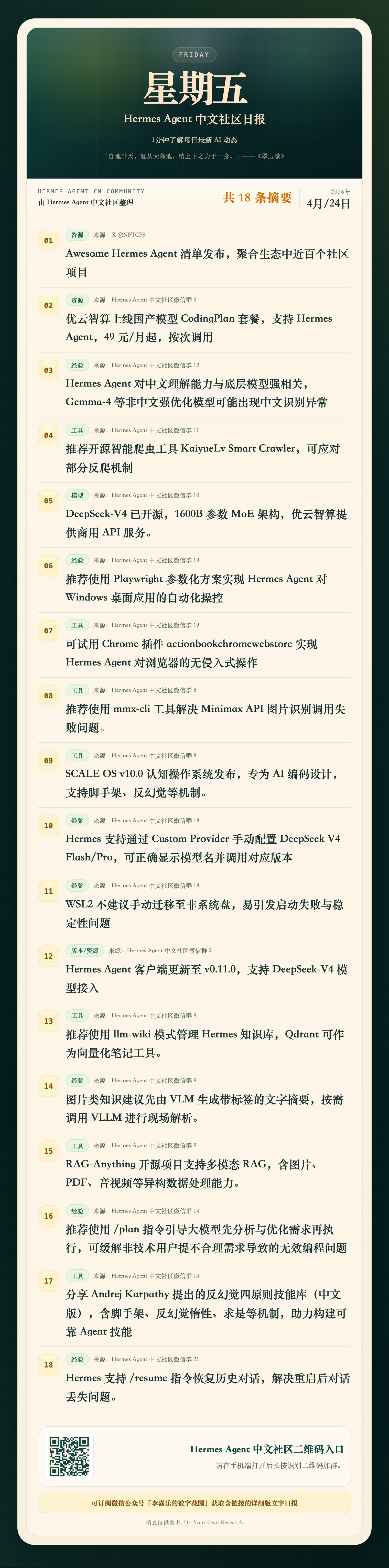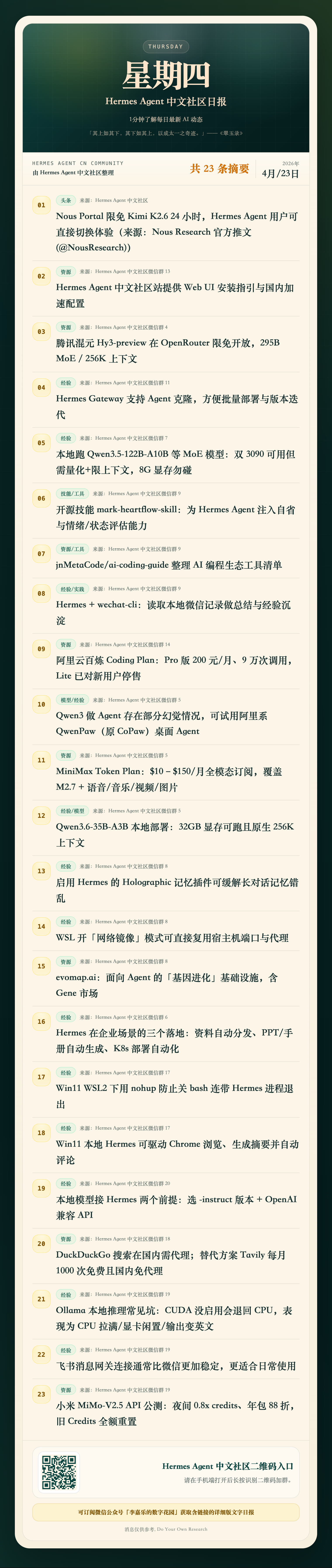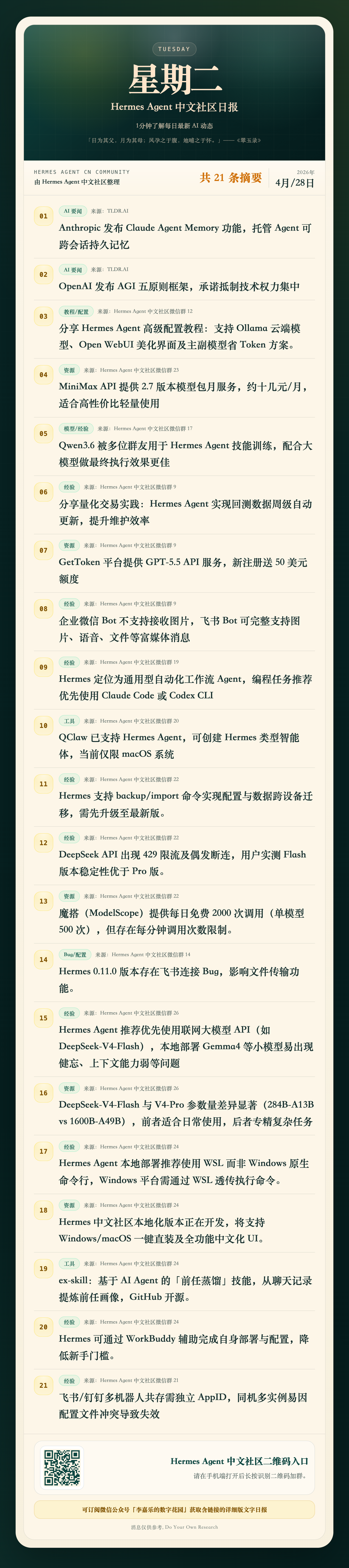 Hermes Agent 中文社區日報|4月28日